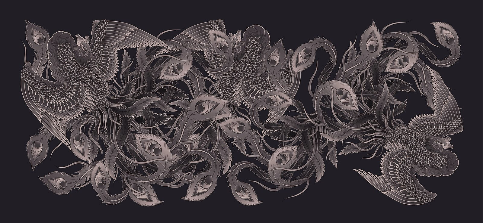 D/Luca Bird of Paradise - Shades of Black Fine Cashmere Scarf