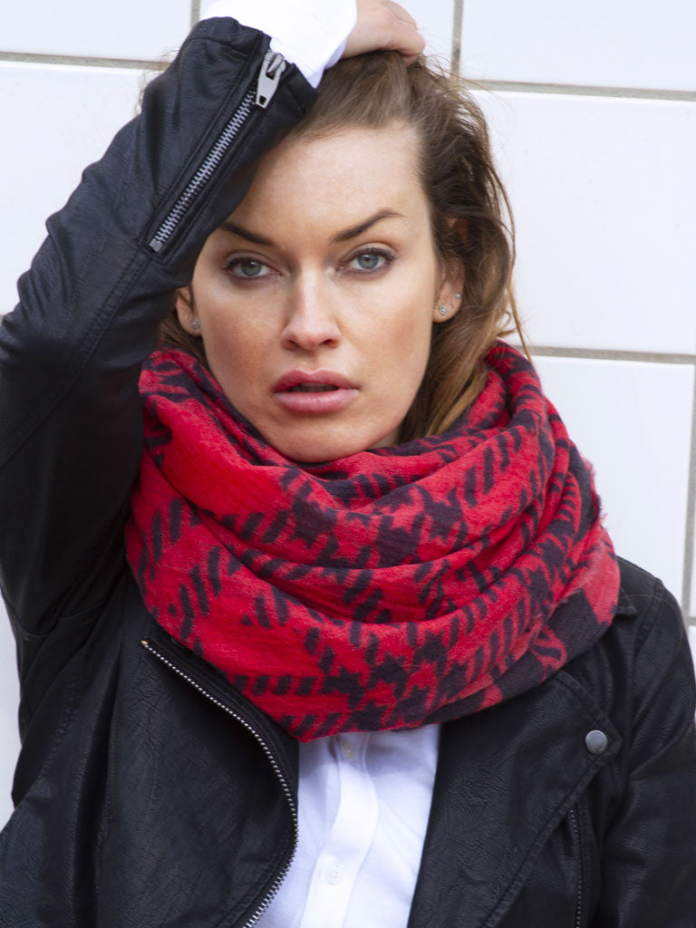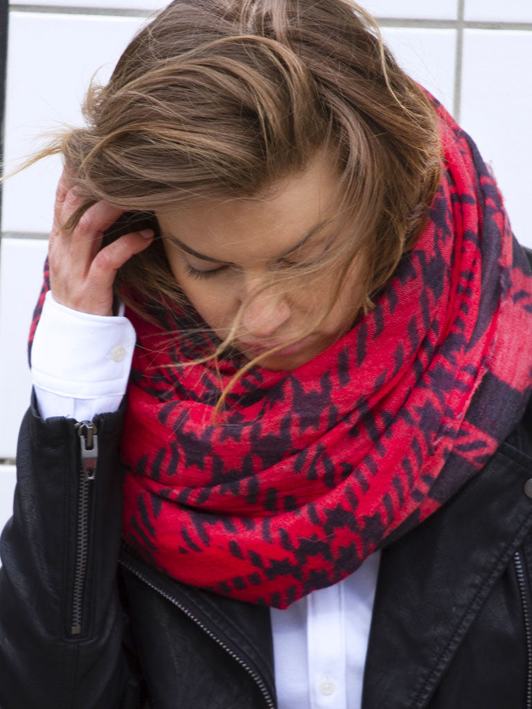Our new wool–silk blend scarf features a luminous, bright red base with a bold, magnified black plaid design, finished with our signature unconditional statement for a true D/Luca touch. Crafted from a luxurious silk–wool blend, it offers an ultra-lightweight, incredibly soft, and smooth texture that feels like a gentle embrace. Timeless and versatile, this scarf is the perfect year-round accessory, elevating both day and evening outfits with ease.